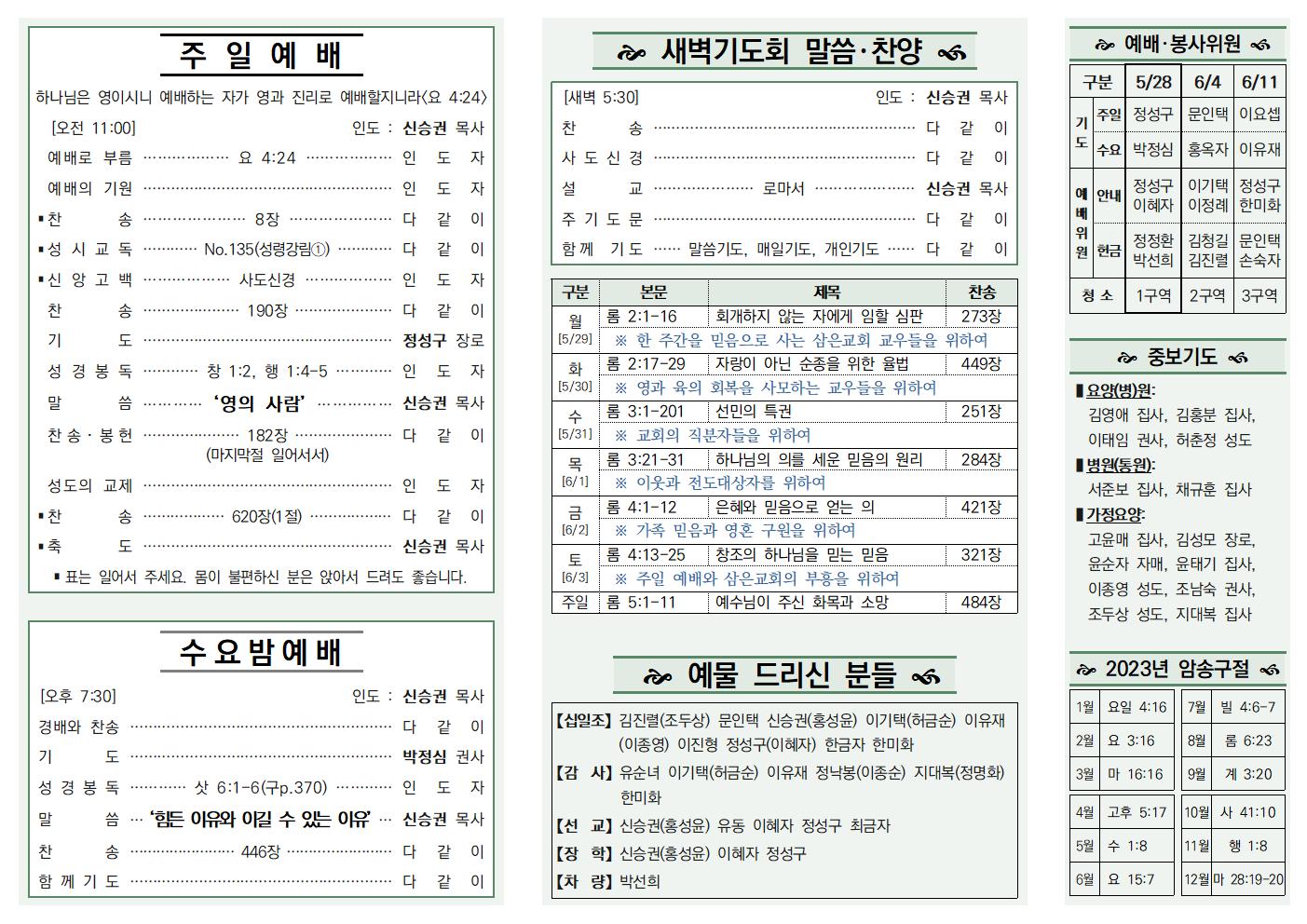 나눔, 소식과 앨범/주보 230528 신승권 목사 2023. 6. 3. 09:31 . 공유하기 게시글 관리 삼은교회 '나눔, 소식과 앨범 > 주보' 카테고리의 다른 글 23.06.25 (0) 2023.07.04 23.06.18 (0) 2023.06.21 230611 (0) 2023.06.10 230604 (0) 2023.06.03 주보_230521 (0) 2023.06.02 '나눔, 소식과 앨범/주보' Related Articles 23.06.18 230611 230604 주보_230521