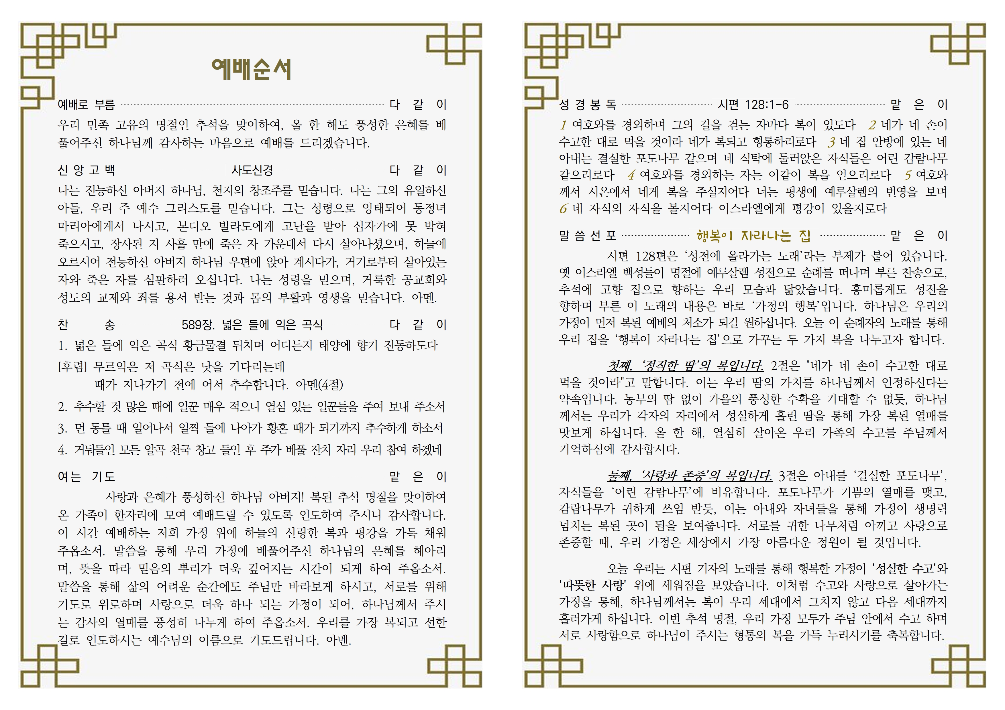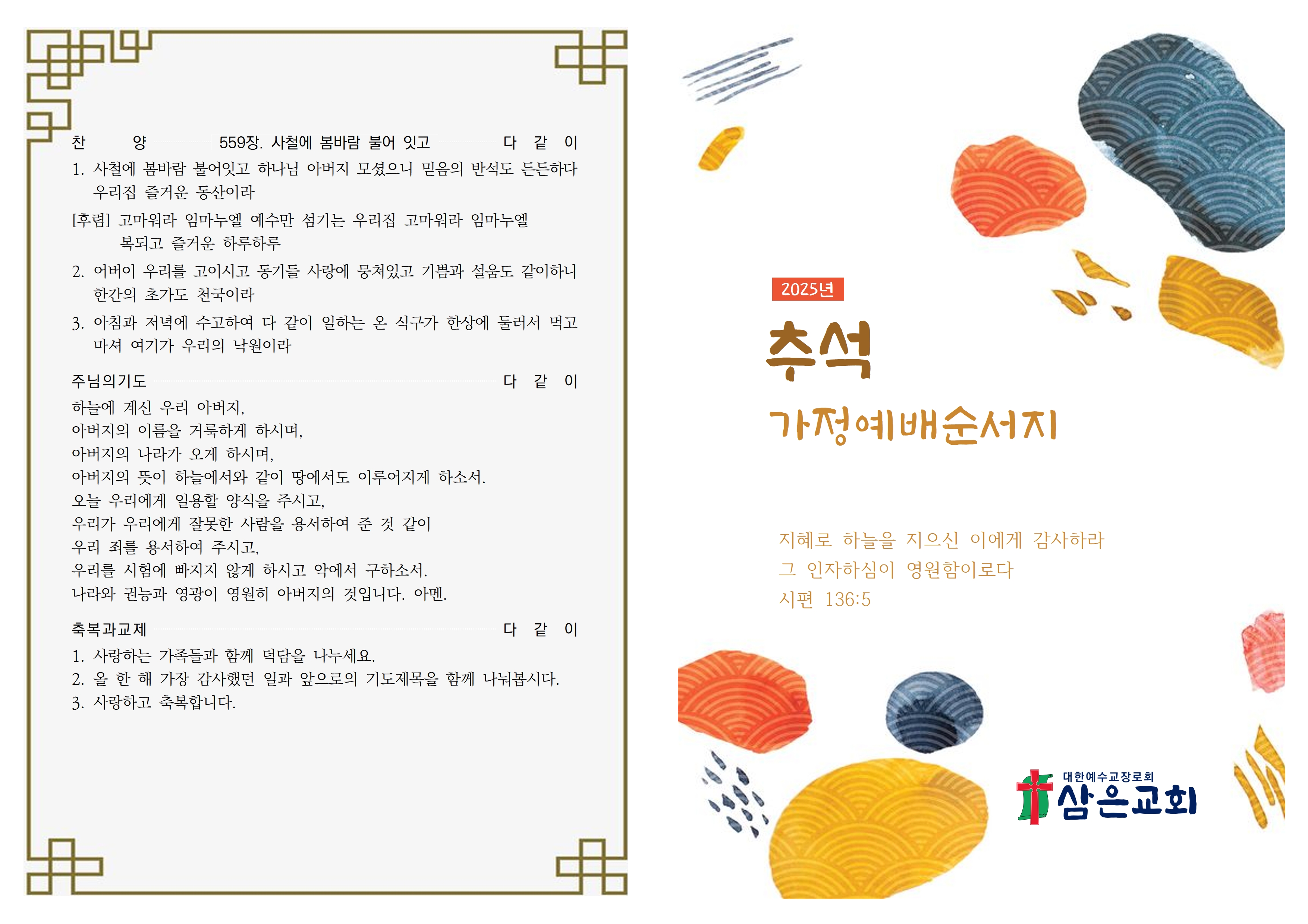 | 추석명절 가정예배순서지(2024년) (0) | 2024.09.06 |