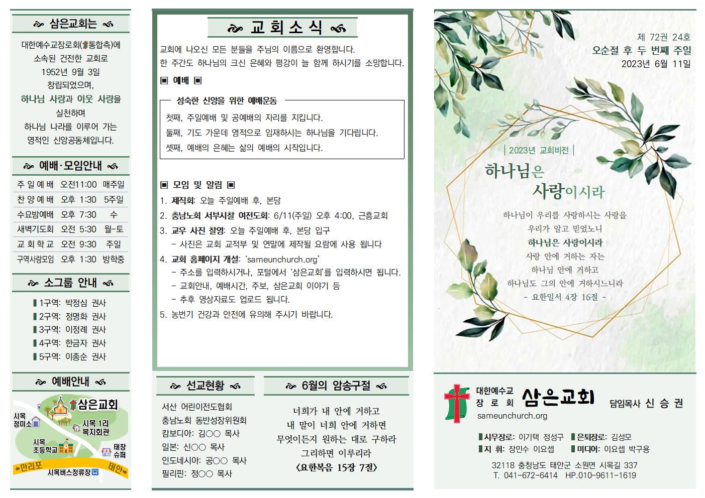 나눔, 소식과 앨범/주보 230611 신승권 목사 2023. 6. 10. 20:20 공유하기 게시글 관리 삼은교회 '나눔, 소식과 앨범 > 주보' 카테고리의 다른 글 23.06.25 (0) 2023.07.04 23.06.18 (0) 2023.06.21 230604 (0) 2023.06.03 230528 (0) 2023.06.03 주보_230521 (0) 2023.06.02 '나눔, 소식과 앨범/주보' Related Articles 23.06.25 23.06.18 230604 230528