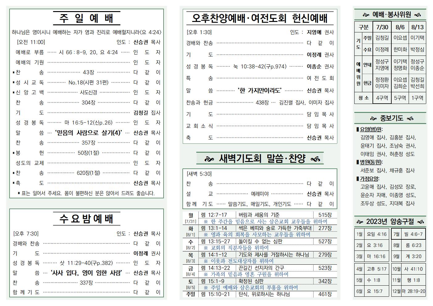 나눔, 소식과 앨범/주보 23.07.30 신승권 목사 2023. 8. 12. 10:04 공유하기 게시글 관리 삼은교회 '나눔, 소식과 앨범 > 주보' 카테고리의 다른 글 23.08.13 (0) 2023.08.12 23.08.06 (0) 2023.08.12 23.07.23 (0) 2023.08.12 23.07.16 (0) 2023.07.15 23.07.08 (0) 2023.07.08 '나눔, 소식과 앨범/주보' Related Articles 23.08.13 23.08.06 23.07.23 23.07.16