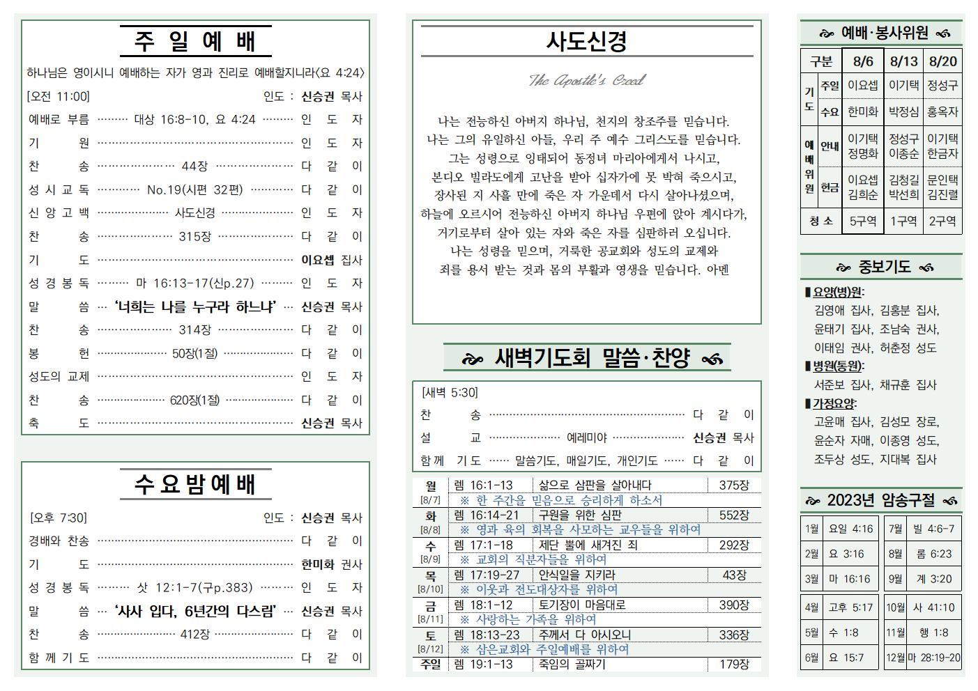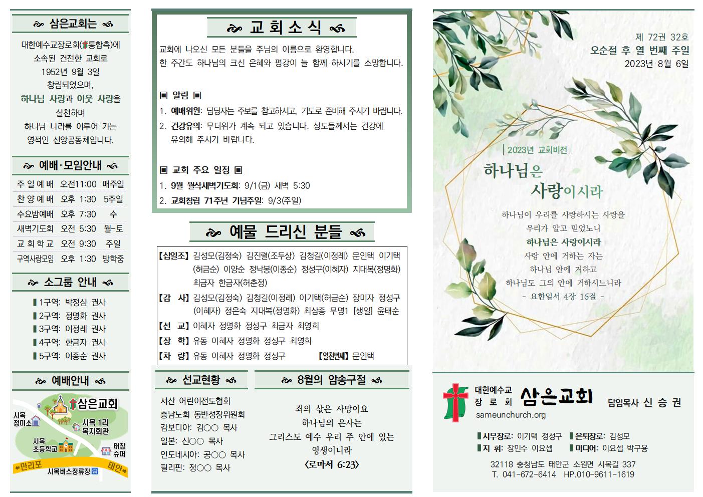 나눔, 소식과 앨범/주보 23.08.06 신승권 목사 2023. 8. 12. 10:05 공유하기 게시글 관리 삼은교회 '나눔, 소식과 앨범 > 주보' 카테고리의 다른 글 23.08.20 (0) 2023.08.19 23.08.13 (0) 2023.08.12 23.07.30 (0) 2023.08.12 23.07.23 (0) 2023.08.12 23.07.16 (0) 2023.07.15 '나눔, 소식과 앨범/주보' Related Articles 23.08.20 23.08.13 23.07.30 23.07.23