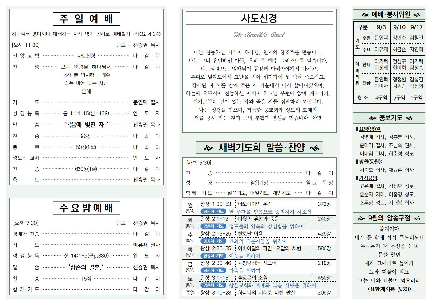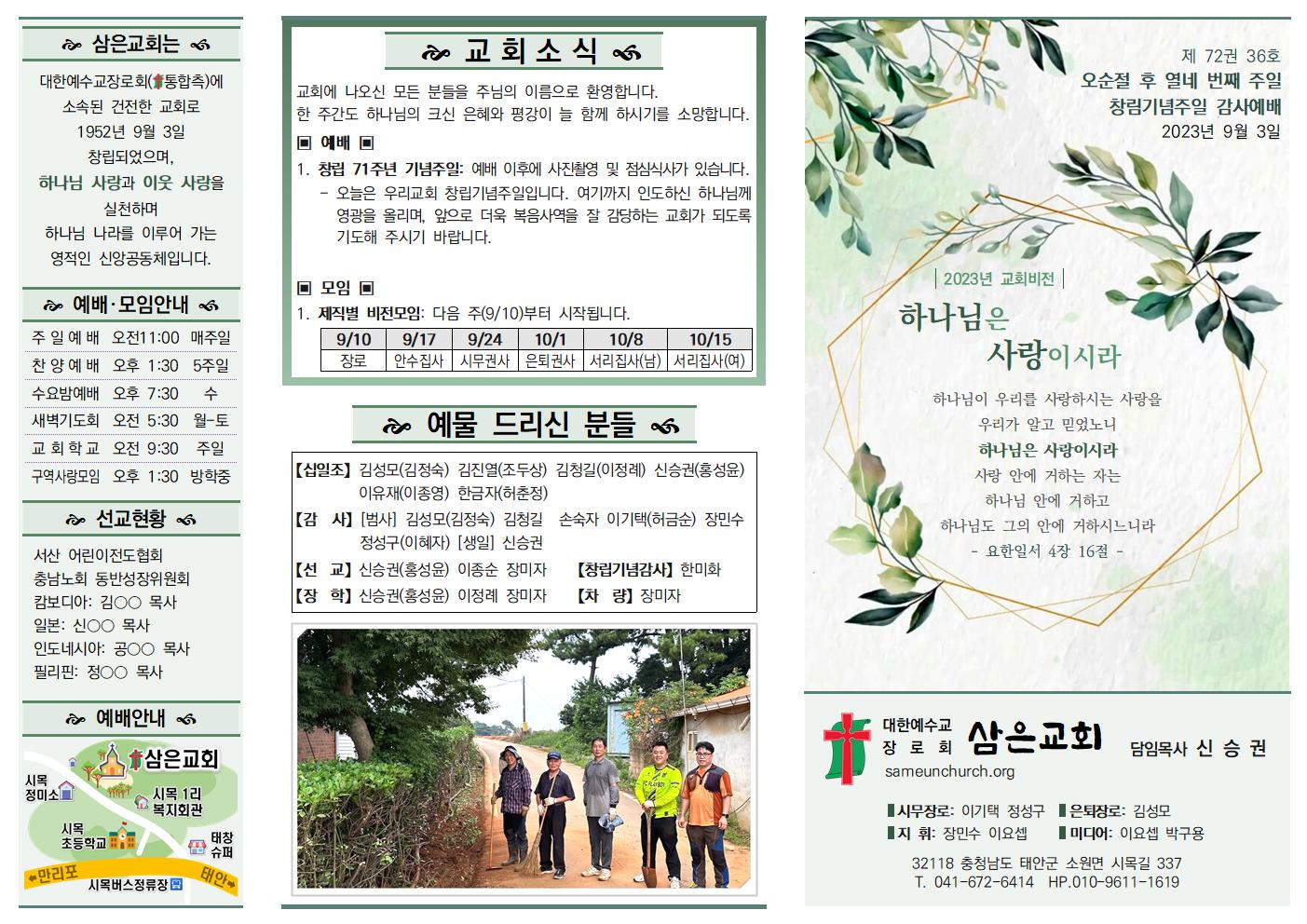 나눔, 소식과 앨범/주보 23.09.03 신승권 목사 2023. 9. 2. 18:15 공유하기 게시글 관리 삼은교회 '나눔, 소식과 앨범 > 주보' 카테고리의 다른 글 23.09.17 (0) 2023.09.16 23.09.10 (0) 2023.09.16 23.08.27 (0) 2023.08.27 23.08.20 (0) 2023.08.19 23.08.13 (0) 2023.08.12 '나눔, 소식과 앨범/주보' Related Articles 23.09.17 23.09.10 23.08.27 23.08.20